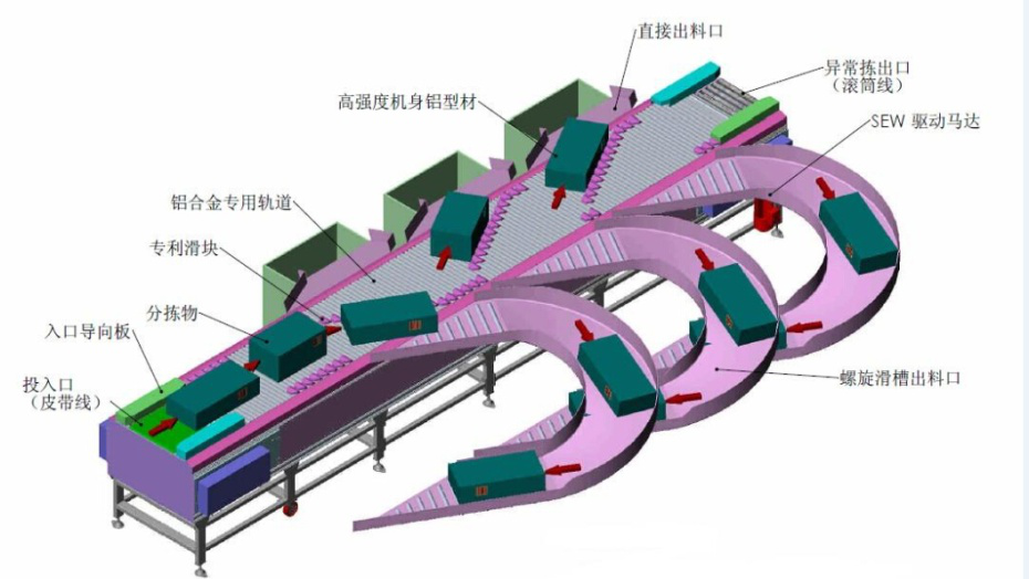 采用ABS专用滑块,输送物品的同时将物品推到指定分拣口,因此在分拣中不会损坏物品。